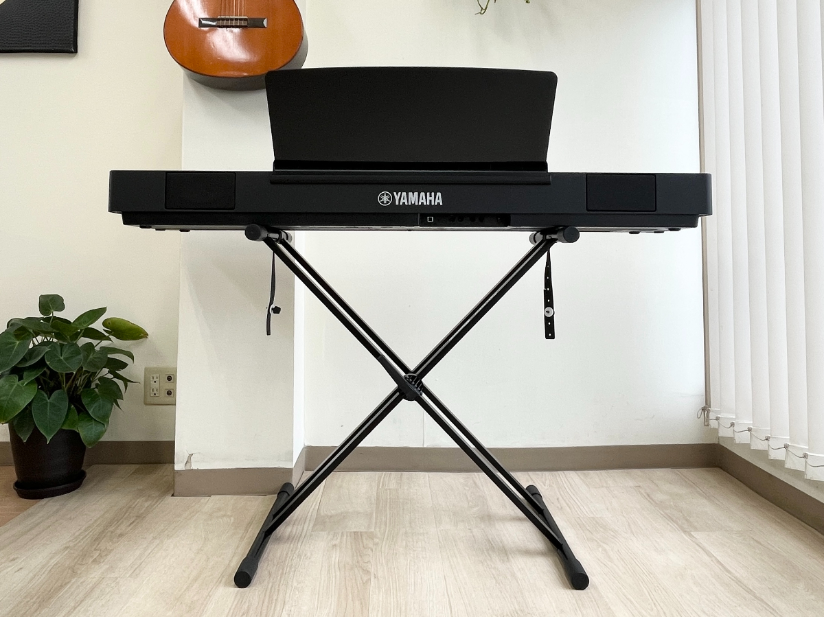 鍵盤部分と、譜面台、X型スタンド、高低自在椅子(YAMAHA BC-205)、