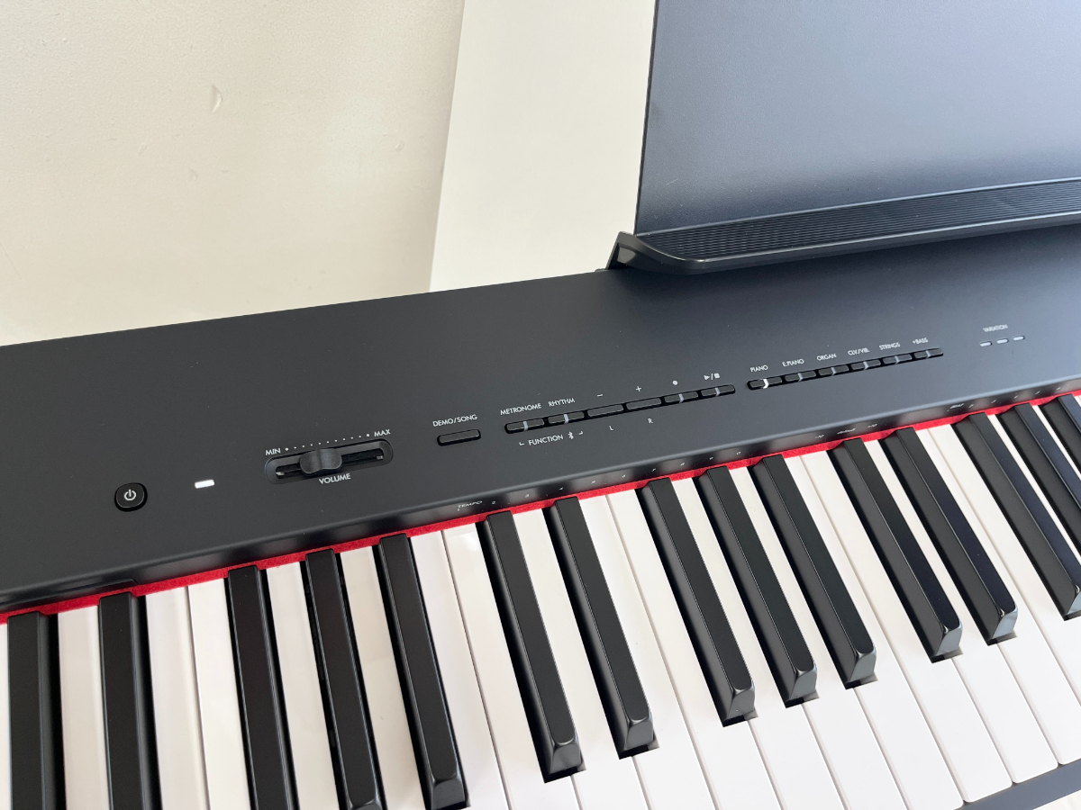卓上タイプでありながらも、鍵盤の低い方は重く、高い方は軽いタッチで作られており、音の強弱もしっかりつけられます。