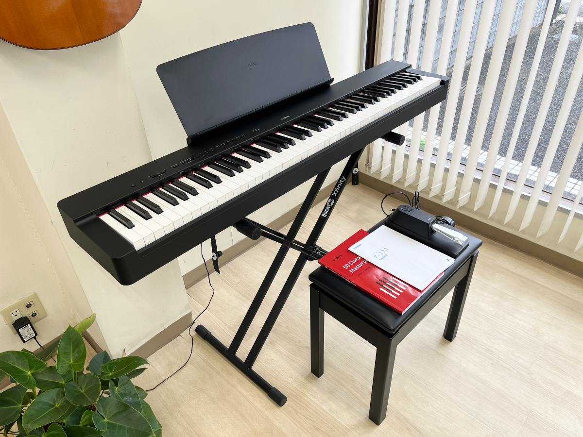 ヤマハ   P-225B   ブラック   2025 年製   ■高低自在椅子■説明書■楽譜集■電源コード/電源アダプター■スタンド 付き